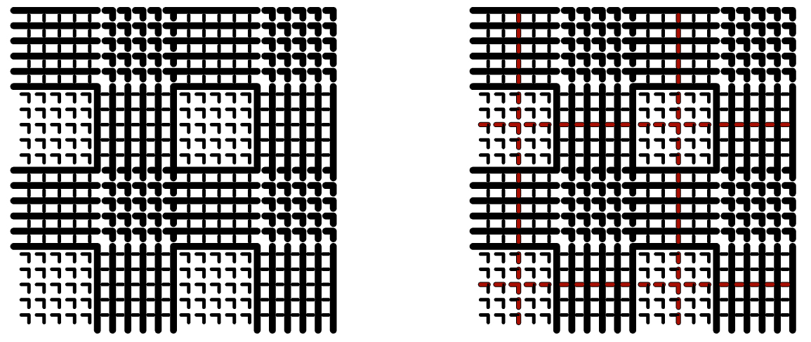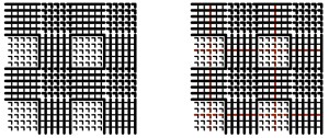 Ce motif est généralement réalisé en croisé 2 et 2 qui présente un quadrillage, souvent contrasté ou plus marqué, qui se superpose sur une armure pied-de-poule. A ce sujet, le pied-de-poule est une armure toile qui présente un visuel d’armure sergé (en diagonale). Le pied-de-poule est un tissu croisé 2 et 2 formé de deux fils de couleurs différentes en chaîne et en trame. Le dessin en forme de damier empietant, caractéristique du tissu pied-de-poule est obtenu par le rythme des effets de chaînes et des effets de trame, associé à une alternance régulière des fils de couleur, en chaîne et en trame. Les motifs gros pied-de-poule sont appelés pied-de-coq.