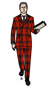 – Donc, tenue pour le club sportif, sans veste trop grande cette fois-ci, pull crickett en laine blanc sous taché d’orange, sur chemise en vichy vert, pantalon en tartan et derbys à brides norvégiens, cravate club en ceinturons.