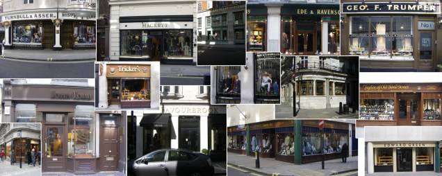 Dans le desordre, Turball & Asser, John Lobb, Tricker’s, Hackett, Fortnum & Mason, Ede & Ravenscroft, Trumper, Beretta, New & Lingwood, Edward Green, Hilditch & Key, Favourbrook, Cordings etc…