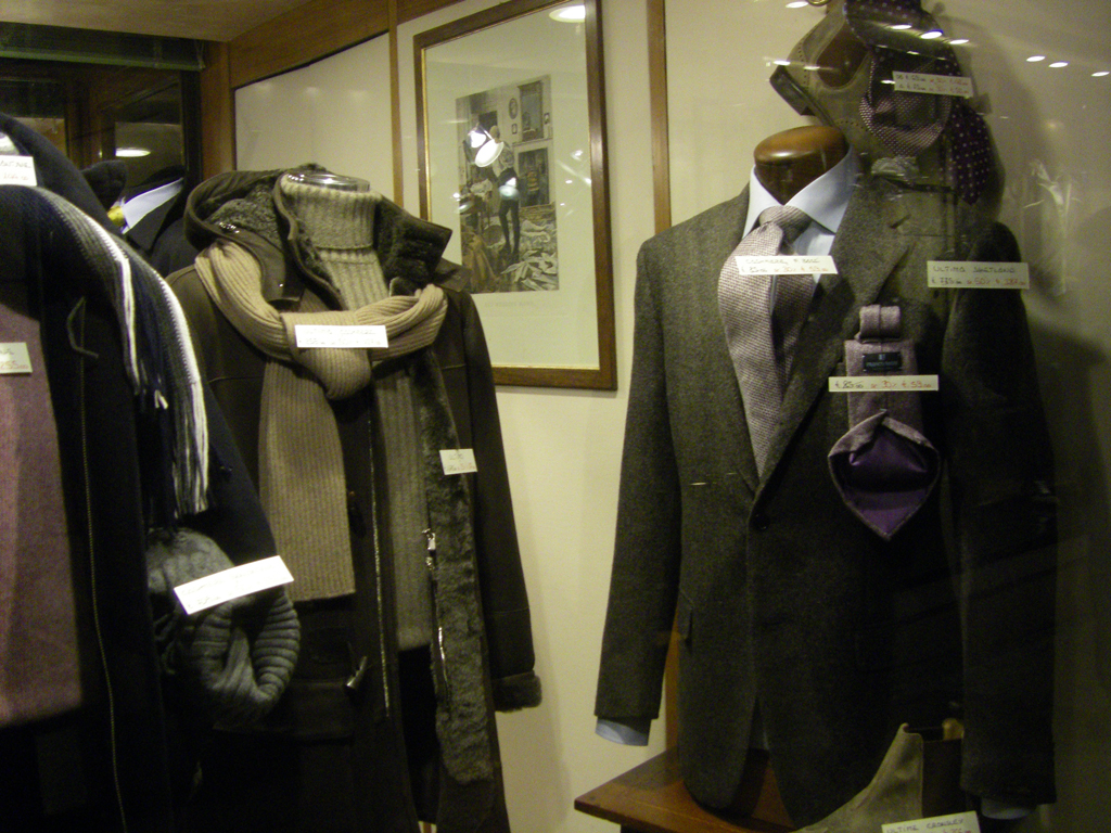 Quel étonnement de trouver à chaque coin de rue une nouvelle boutique de vêtements masculins, et plus encore quel émerveillement de constater la qualité visuel de l’ensemble. Difficile de trouver un équivalent en France et même au Royaume-Uni. Les italiens sont passés maître dans la démarche personnelle qu’est l’habillement. Ceci-dit, ils y mettent le prix. Non pas que les prix généraux soient plus hauts qu’en France, mais plutôt que de nombreuses boutiques proposent des produits nettement plus chers, mais de qualité !