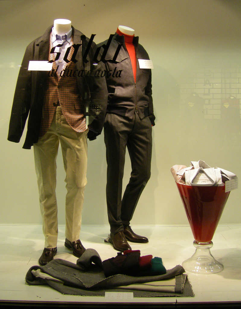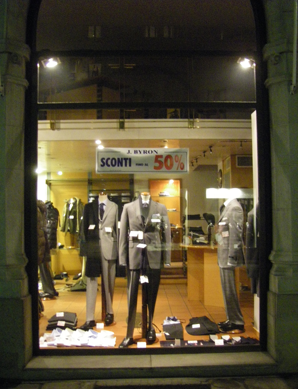 Une fois n’est pas coutume, l’article est photographique ce jour. J’étais en fin de semaine en Italie, dans une ville moyenne des Dolomites pour mettre l’avant dernière main à mon projet. L’occasion de faire un tour nocturne dans la ville et d’être étonné par la qualité des boutiques pour homme. Voici les photos, uniquement des revendeurs indépendants. J’ai laissé de côté les boutiques de grands groupes, comme Trussardi ou Calvin Klein. Figurent donc seulement les vitrines des magasins de vêtements classiques (hors sportwear et vêtements techniques) ; de toutes les vitrines que j’ai pu voir (7 échoppes dans le centre ville). Je reste bouche bée devant la qualité des produits et l’excellence de leur présentation, sobrement, efficacement. On sent qu’ils ont lu Apparel Arts, ce fameux magazine qui éduquait les boutiquiers.