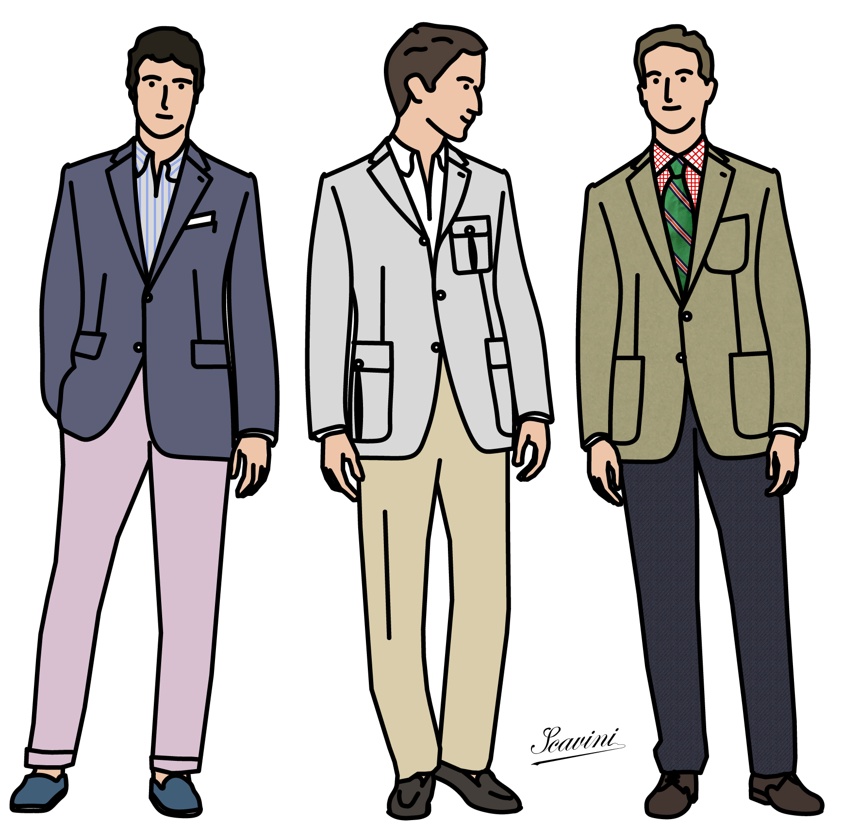 Si le répertoire des tweeds est très développé l’hiver, la saison estivale a elle aussi ses classiques, sport coats ou blazer. Mais leurs choix semblent souvent plus compliqués, peut-être est-ce dû au soleil et à sa lumière, qui normalement nous écrase… Nous préférons alors la clarté. Car si les motifs ne nous font pas peur d’habitude, nous avons tout de même quelques scrupules maintenant. Voici ce soir trois propositions toutes simples, classiques, presque des essentiels de la garde robe pour l’été. Les coloris sont volontairement unis, et cela pour faciliter les associations avec cravates et chemises. C’est la garantie de la longévité aussi, loin des caprices de la mode.