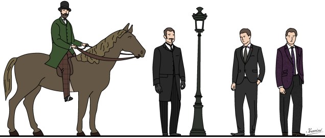 Enfin bref, terminons là ce monologue. Admettons que les vestes sports soient l’avenir en ce qui concerne les belles pièces. Dommage pour les pantalons qui soit dit en passant sont les pièces les plus difficiles à bien couper. Il reste à bien les porter, non pas trop courte comme c’est la mode, non pas trop sombre comme c’est la mode, non pas trop fantaisiste comme c’est la mode, mais avec goût et haut en couleur! Égayons-nous, évidemment, pour notre plus grand plaisir, notre plus grand bien! Et si l’on doit être en costume, alors tenons-en nous aux classiques !