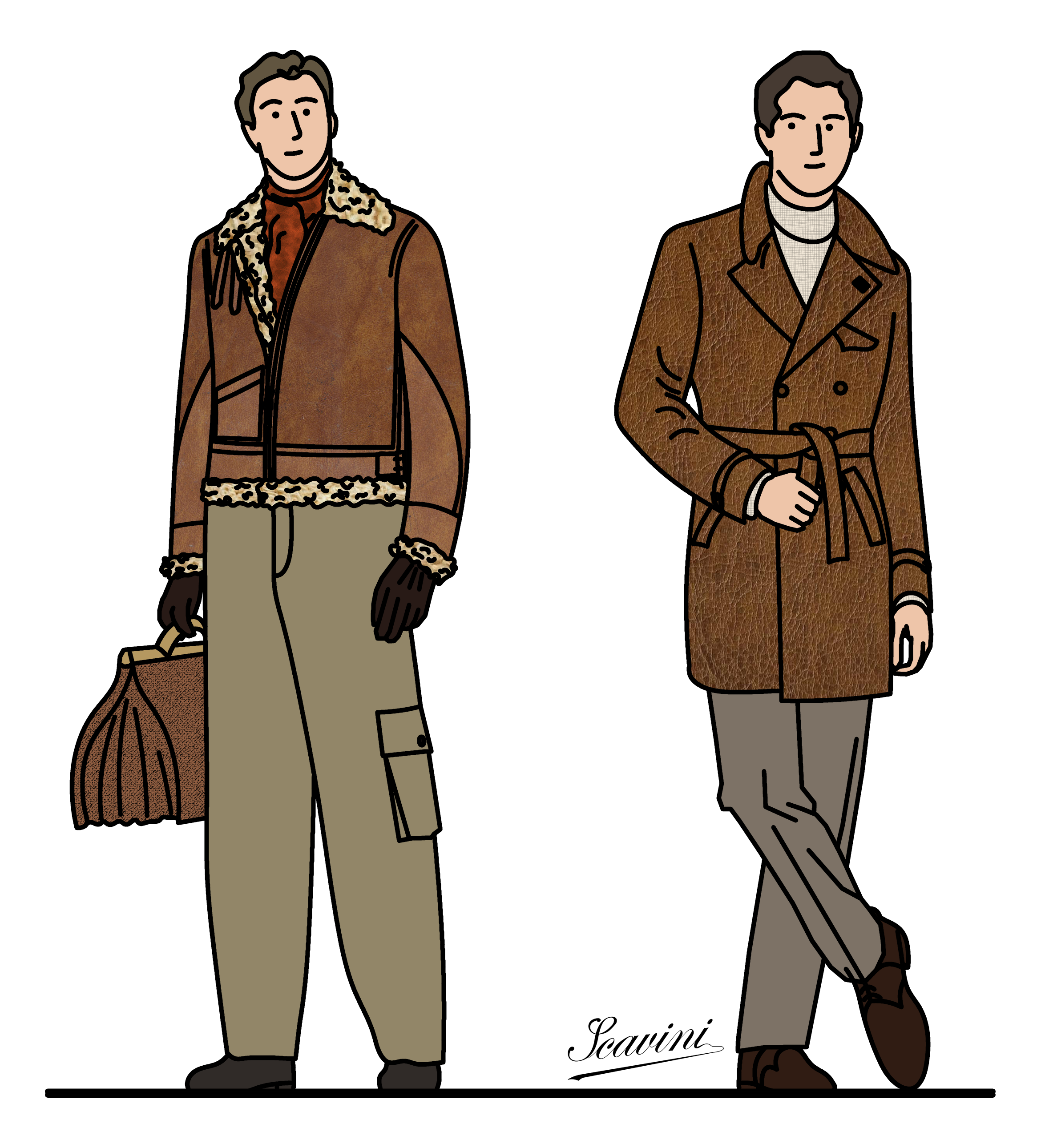 Le deuxième est un manteau croisé, plutôt court (pour la position assise) à grand col et manches raglantes, souvent ceinturé à la taille et possédant deux poches ventrales et une poche poitrine à rabat. Ce modèle, digne des premiers temps héroïques de l’aviation est indéniablement élégant et très versatile.