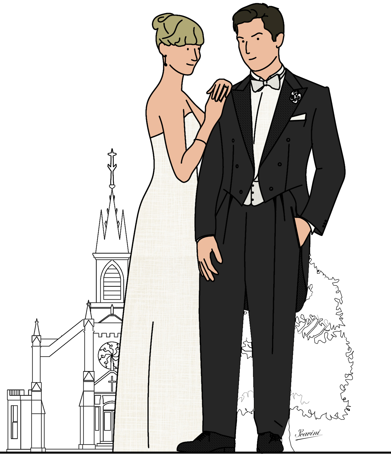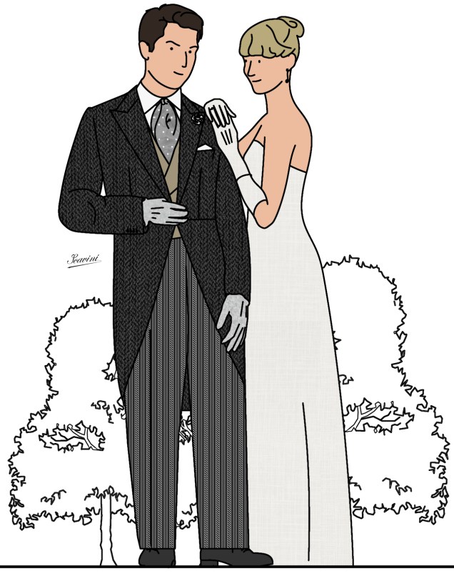 • L’habit s’accompagne du chapeau haut-de-forme, mais dût-il claquer des dents, par -10°c, le marié sort de l’église sans endosser son manteau.