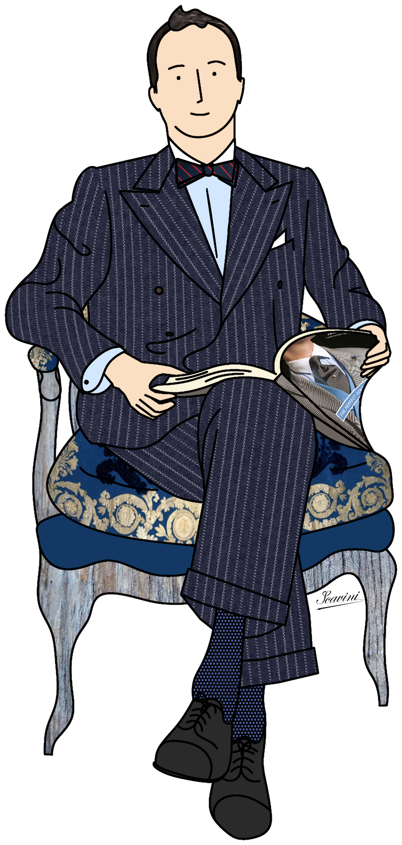 Le dépareillé d’aujourd’hui a encore plus gagné en liberté d’expression. Il s’autonomise comme un genre à lui tout seul, bien aidé par le développement sans faille du ‘sportswear’. Si le pantalon de flanelle gris reste un incontournable, un autre tend à le remplacer : le pantalon bleu (en flanelle – rarement, ou en coton – le chino, souvent). Avec le bleu, les italiens ont su parfaitement mêler le marron. D’où l’écrasante mode actuelle pour le mélange (souvent réussi du reste) de bleu marine et de marron. On voit même apparaitre des souliers en veau-velours bleu. Évidemment, il fallait y penser.