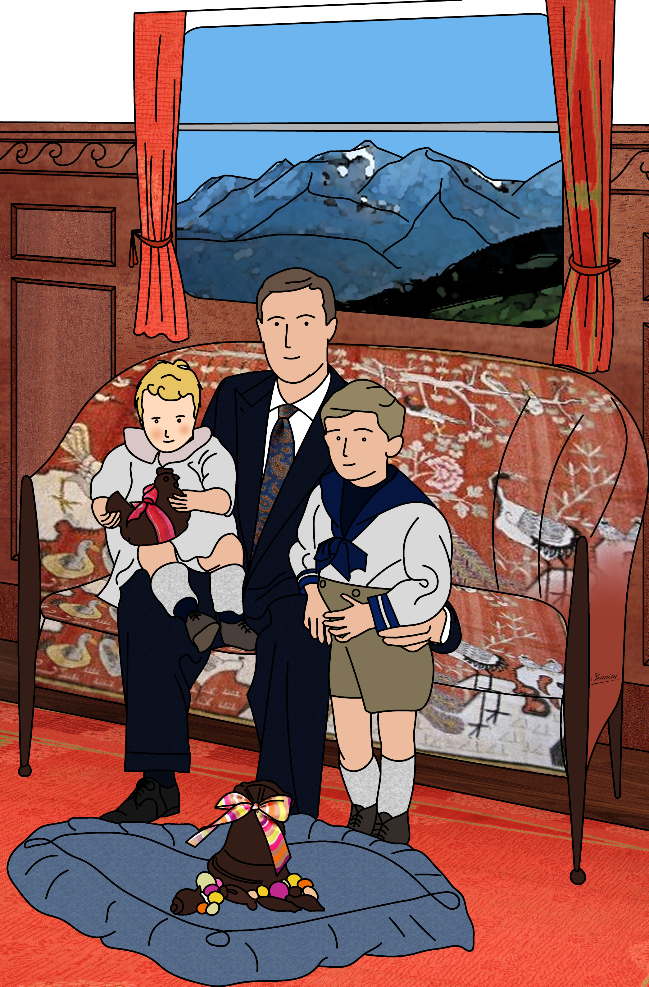 Cette année, portrait d’un père voyageant seul avec ses enfants, à bord d’un Grand Express Européen, où une chasse aux œufs fut organisée par le personnel de bord.