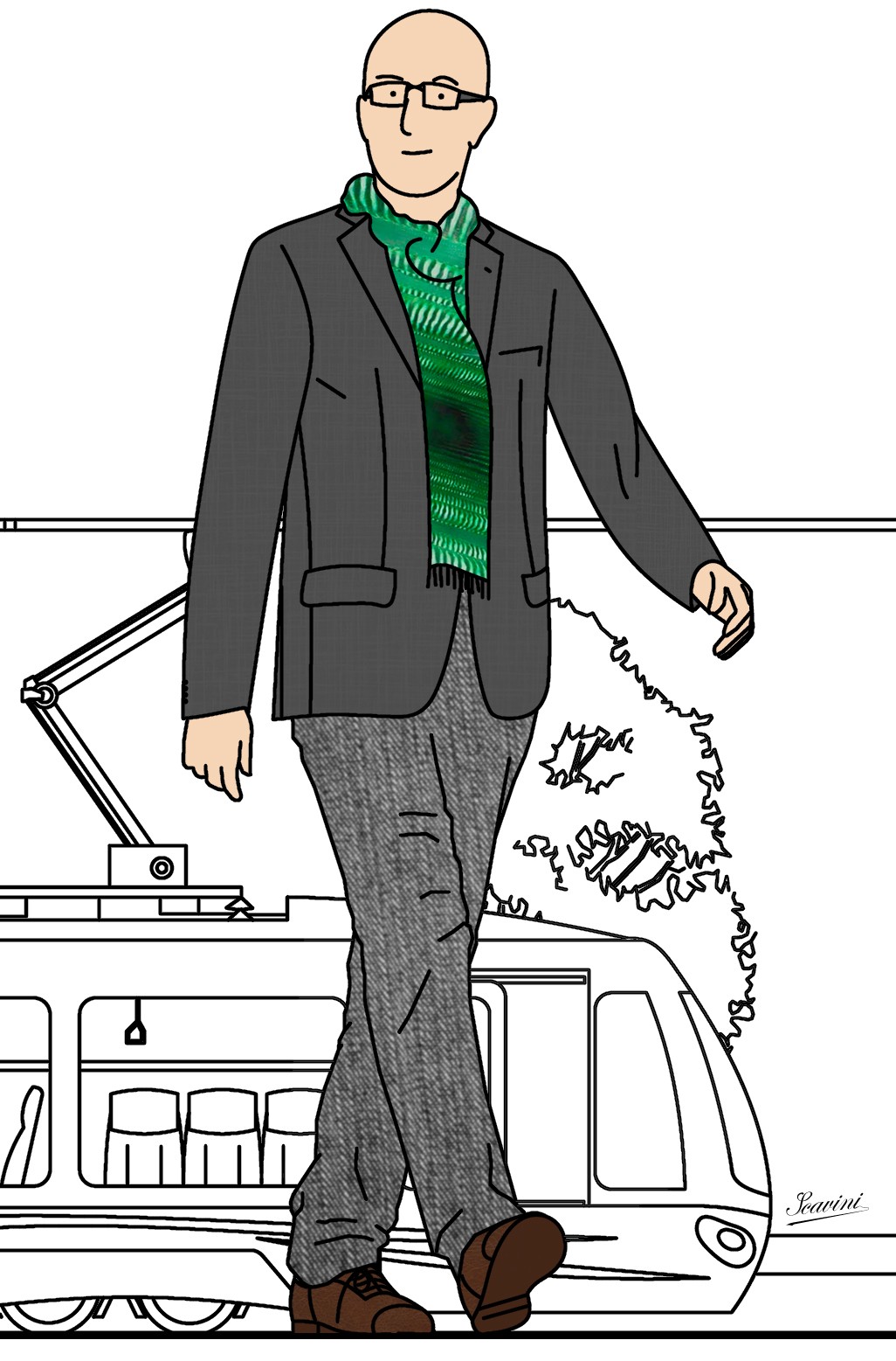 – On pourrait objecter qu’il peut aussi être styliste. Non car je pense que la grande écharpe verte sert à le protéger lors des visites de chantier. Roland Castro aurait mis une écharpe rouge. Un styliste/décorateur une noire ou rien, pour montrer son t-shirt Zadig & Voltaire.