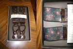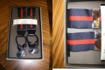 Commandées au creux de l’été, elles sont arrivées ce matin : voici cinq paires de bretelles réalisées par les italiens de chez Victrix, spécialement pour mon magasin. Quatre sont en gros grain et une en élasthanne imprimée cachemire, toutes sont dépourvues de clips mais possèdent des œillets en cuirs. Le cuir est noir ou burgundy ou marine ou marron suivant le tissu. 90€.