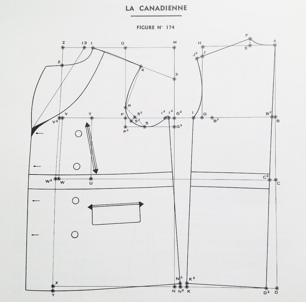 De nos jours, ce vêtement est un peu tombé en désuétude, même si quelques maisons en éditent de temps à autre, comme Gap. Son aspect un peu militaire, dû en partie à la couleur olive, rend la canadienne populaire auprès des jeunes. Pour autant, il n’est pas le vêtement le plus élégant qui soit. La pièce est charmante ceci dit, surtout lorsque l’on voit son patronage, ci dessous. Ma quête continue donc !