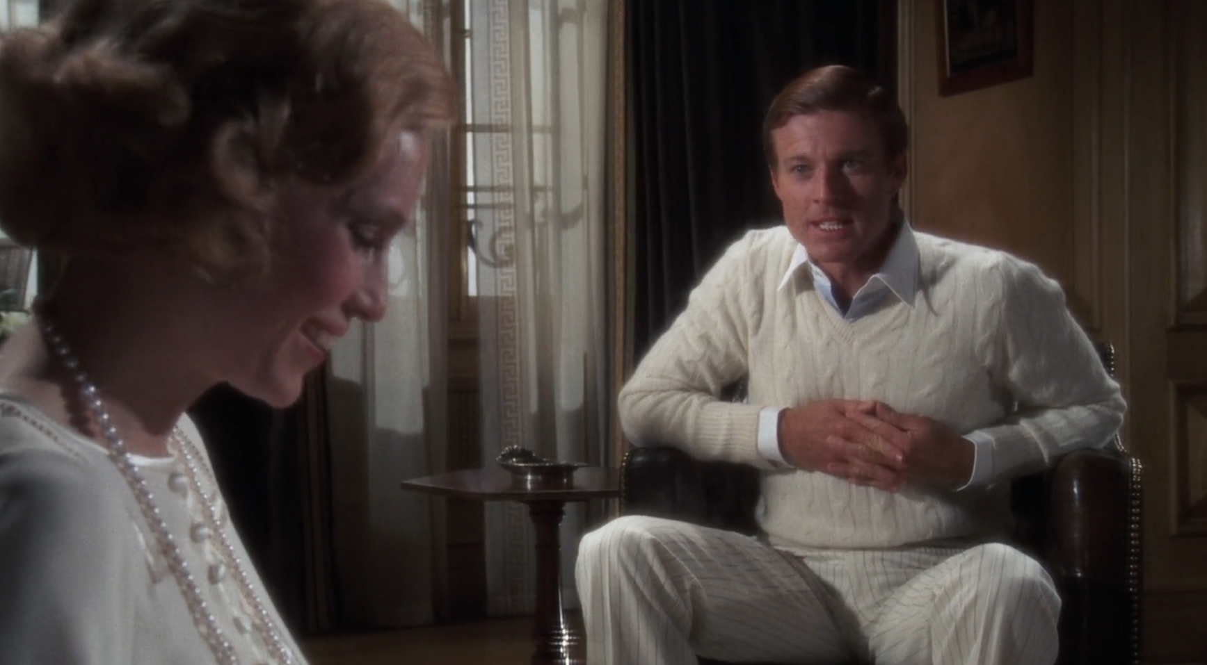 J’ai pris goût à décortiquer scènes après scènes les films élégants, depuis Titanic pendant le confinement. Mais quel travail toutefois ! Avec un client récemment, nous parlions de Gatsby Le Magnifique. Pas le film récent avec Léonardo DiCaprio. Non. Mais celui de 1974, réalisé par Jack Clayton, sur un scénario adapté par Francis Ford Coppola, avec comme acteur principal, Robert Redford. Quel film ! Je l’ai vu il y a longtemps, et j’en avais gardé un souvenir douçâtre. Beau certes, mais triste, mélancolique, en un mot difficile. Certes le roman de F. Scott Fitzgerald narre une fête permanente, la joie des années folles. Mais l’intrigue et le fond de l’histoire sont sombres et amers. Ce n’est pas tellement un film à regarder à la légère, à la différence du dernier opus, bien plus tapageur. Là, nous sommes dans l’introspection, l’exploration des mentalités de la haute société et son désœuvrement. Et dans l’amour surtout. Des uns pour les autres, et … des belles choses ! Une apothéose visuelle. Attention, j’ai pris une centaine de clichés haute définition. Alors attachez vos ceintures. Je vais distiller cet article en deux épisodes.