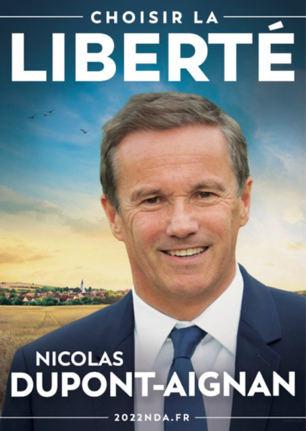 Pas chic en revanche la veste de M. Nicolas Dupont-Aignan. Ah ces revers, c’est indigne. Rien à dire de plus. Si. Qu’il pourrait oser une cravate avec plus de relief. Je lui proposerai bien un modèle bleu à pois rouges. Mais il est interdit aux candidats de mettre du bleu, du blanc et du rouge dans l’affiche…