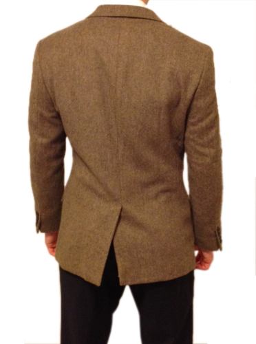 D’ailleurs, une fente et sans fente partagent les mêmes caractéristiques de mesures et d’esthétique. Il ne faut pas être chiche et en retour la veste dessine comme une silhouette de sablier, comme le montre la photo ci-dessus, même si, je le reconnais c’est le dos d’une veste de femme. Mais l’idée est bonne.