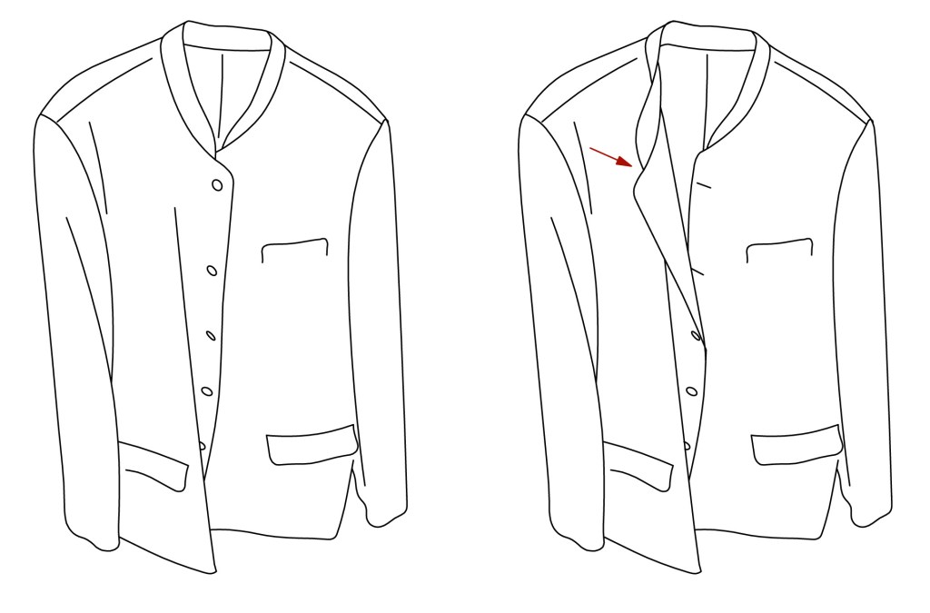Non, j’aimais cette double fente, permettant au fessier d’avoir de la place, et permettant aussi à la veste d’avoir de la mobilité autour du bassin. Cette double découpe dans les pans de la veste permet à celle-ci d’être très libre, plus libre. Moins empesée.