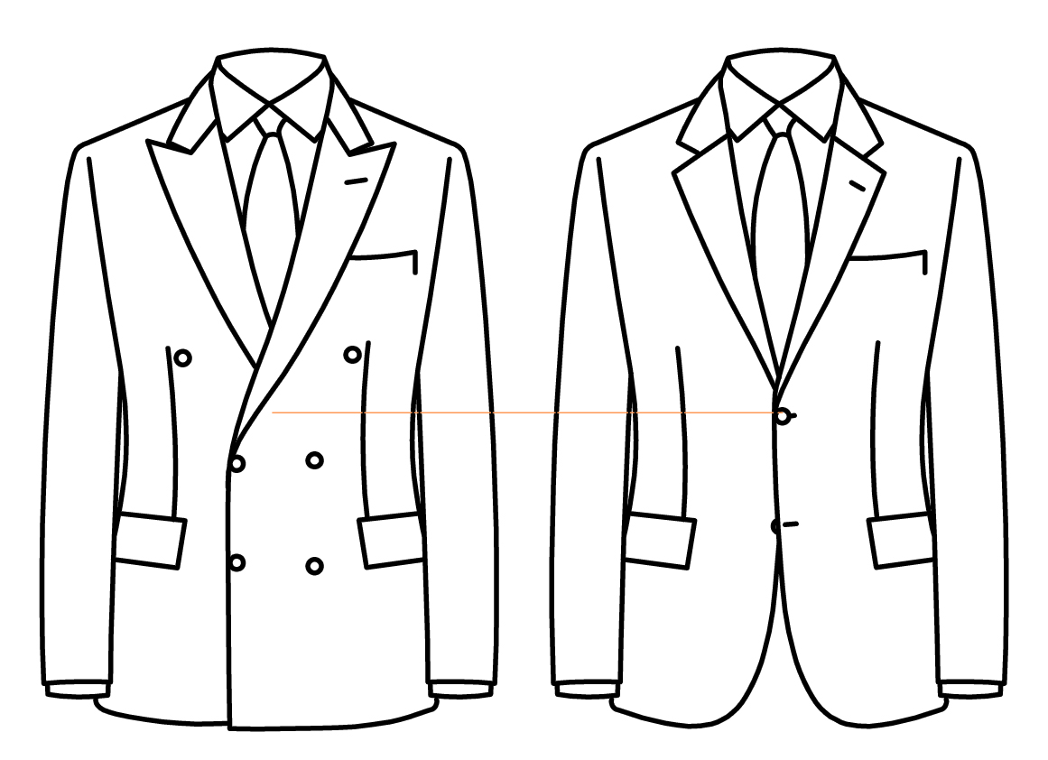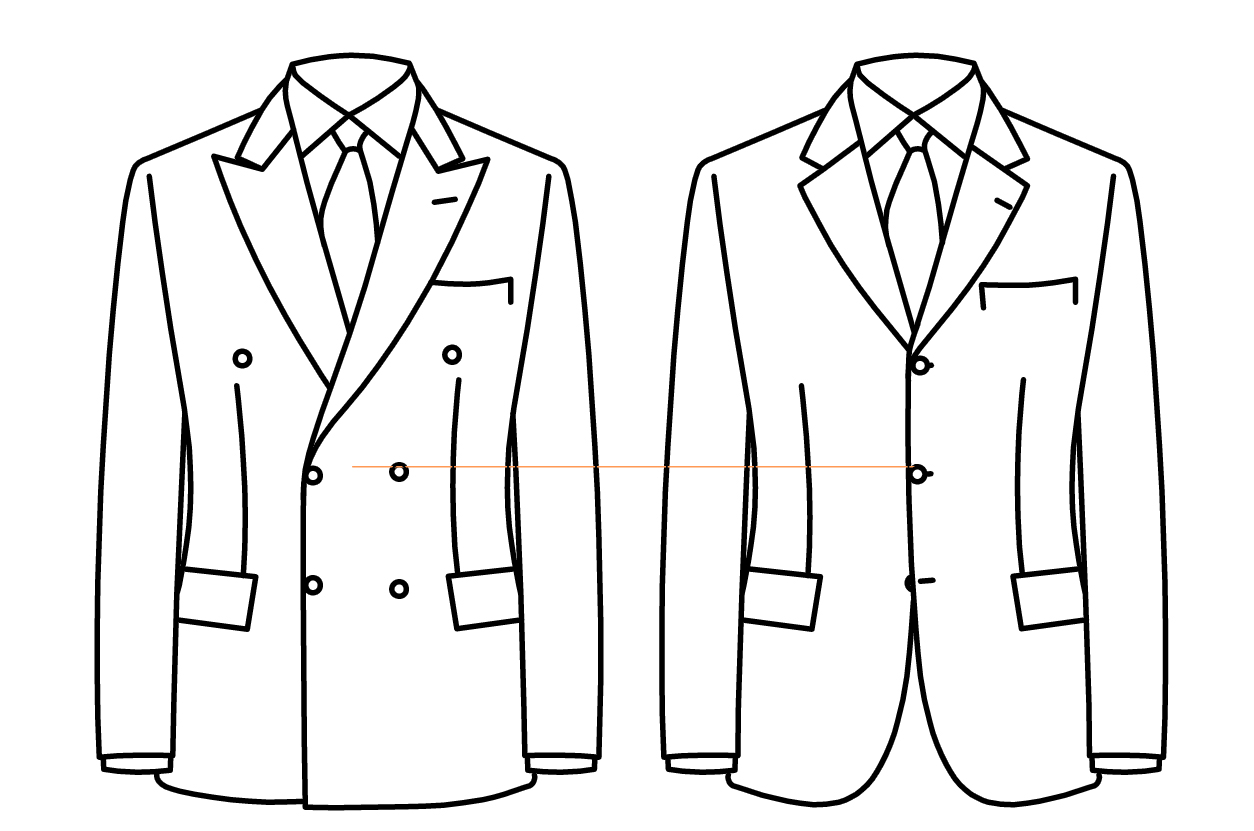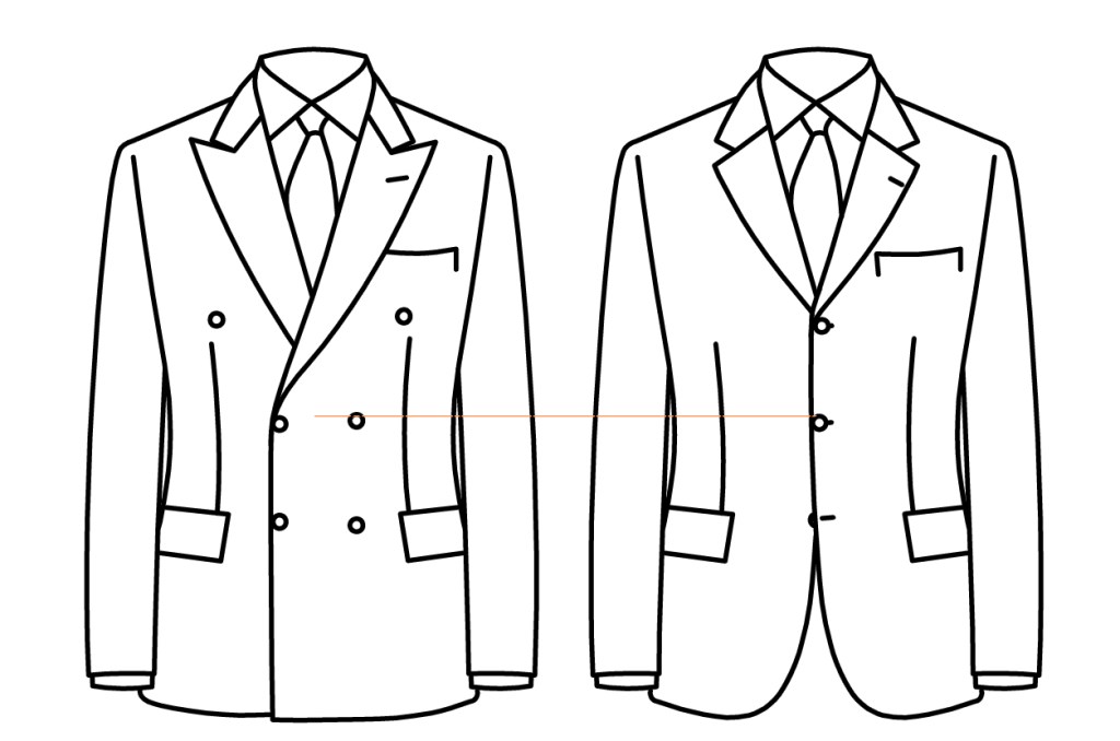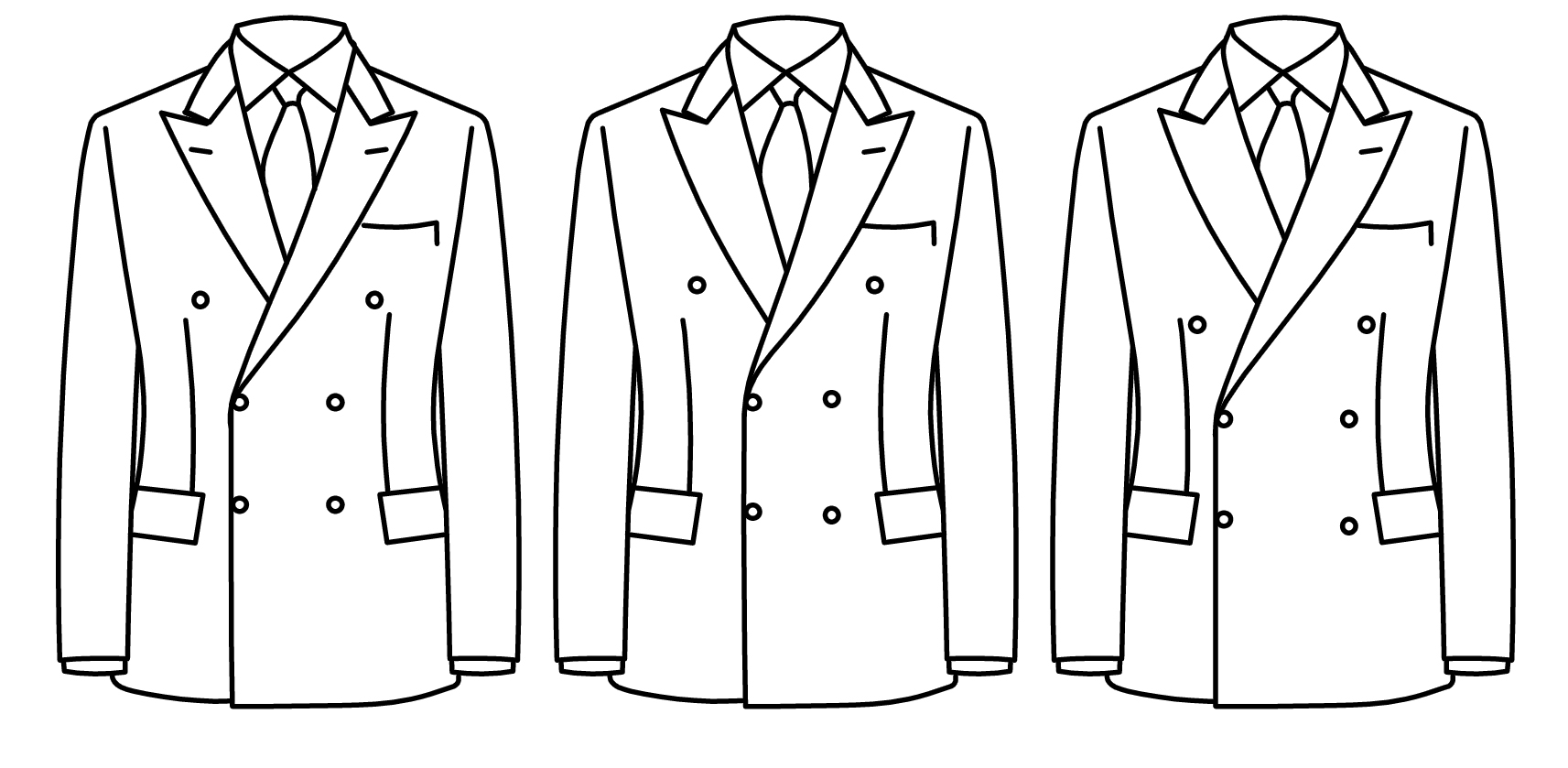 De fait, l’ouverture du cran est légèrement plus fermée. Il existe quelques variantes, suivant les tailleurs, ou suivant que la veste est 2 ou 3 boutons. L’équilibre y est très subtil, entre dessin pur et lignes moches. La symétrie est très importante aussi. Et ce cran présente mieux s’il est un peu plus bas. Sur mon petit schéma ci-dessous, on pourrait penser que le canonique, à la Camps de Luca est ne n°2 et le Smalto, quelque chose entre les deux derniers :