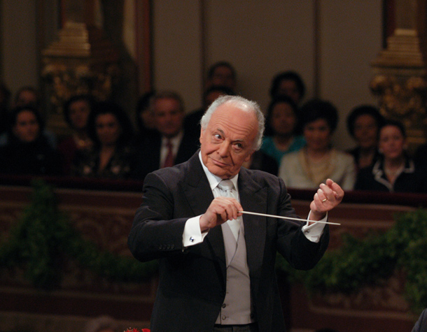 2010. Un français dirige. Georges Prêtre. Pas en jaquette. Est-ce étonnant ? Toutefois, son costume est une somptuosité. Une coupe confortable irréprochable, un revers placé pas trop haut, un boutonnage plutôt bas, une cravate sobre et qualitative dont la nuance rappelle sa chevelure… Oui, c’est très beau.