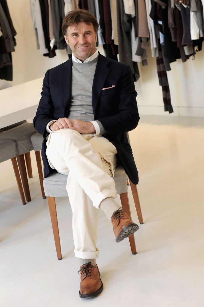 L’éclosion du style « Cucinelli » largement pillé par Suit Supply, composé autour d’une palette très claire de beige, de gris pastel et de blanc cassé a donné l’idée de la couleur claire. Et du pantalon blanc en particulier. Ou blanc cassé. Autrement dit, écru. Pour l’hiver en flanelle ou en velours. Pour l’été, en coton ou en lin.
