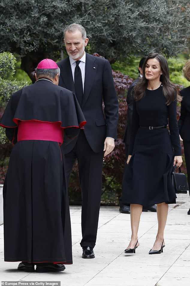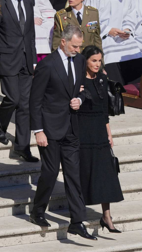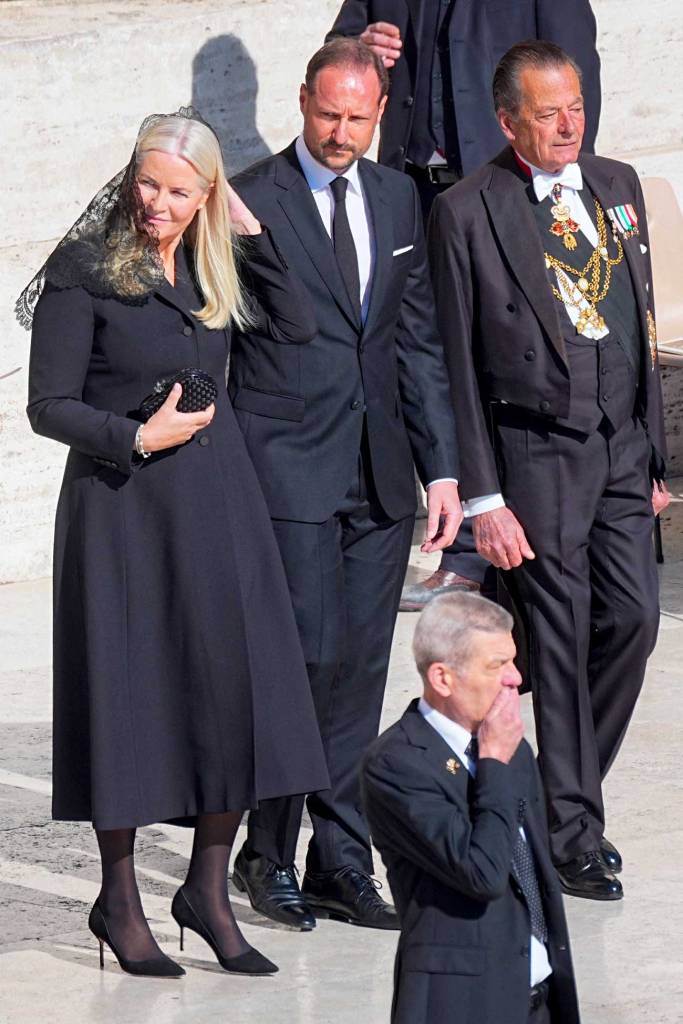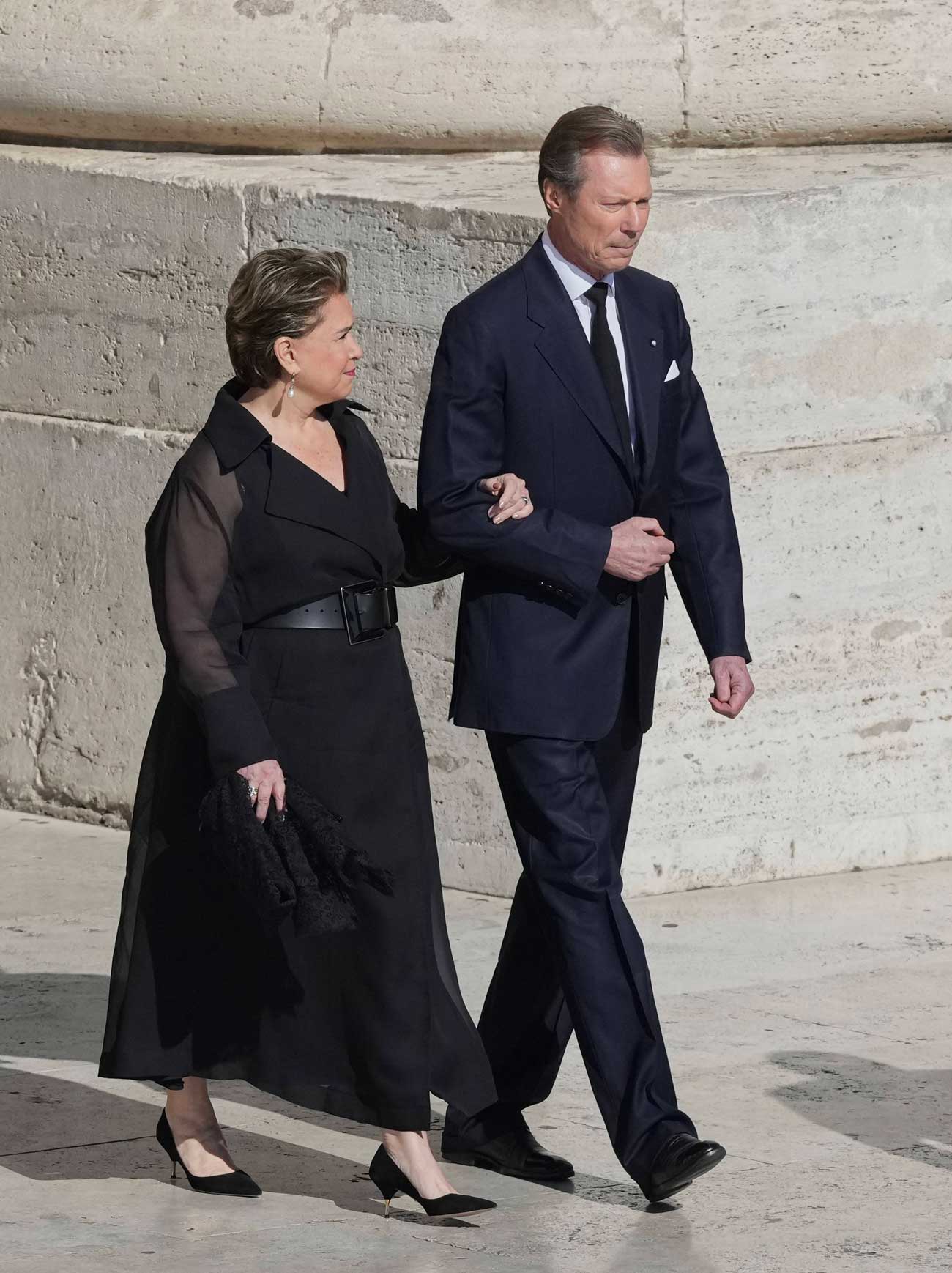 Le prince Albert II avait choisi une tenue similaire. Quant à la princesse Charlène, elle porte la mantille avec une dévotion qui force le respect. J’ai un doute sur les lunettes de soleil. Elles semblent très portées. Des lunettes de soleil à un enterrement, c’est correct?