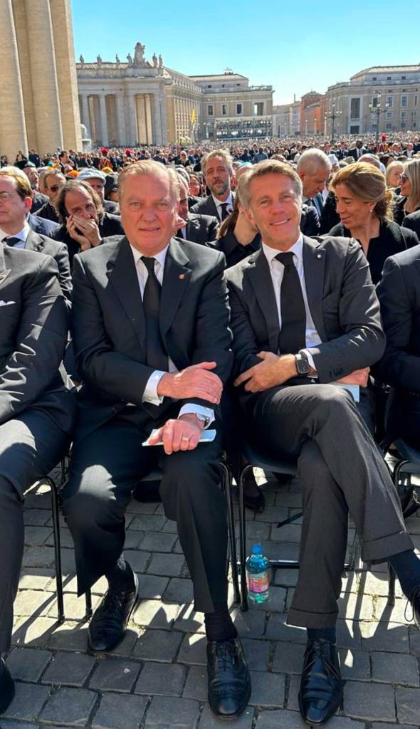 Celui aux cheveux blancs est effectivement l’ambassadeur Alfredo Bastianelli, qui est par ailleurs chancelier de l’ordre du Saint-Sepulcre dont j’ai l’honneur d’être membre.