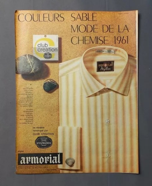 D’abord, ce que j’appelle le col français, fermé, est en fait le col le col le plus traditionnel avec son V plutôt fermé. Entre POLO et STANLEY sur la planche du haut. Ensuite, ce que j’appelle le col italien, est en fait appelé col « semi cutaway » ou « medium spread » en anglais. Mais surtout, les italiens appellent ce col un col… français. Je vous le donne en mille ! Un col très répandu chez nous dans les années 50 et 60 avec des marques en vue comme ARMORIAL ou NOVELTEX, voir ci-dessous : magnifique chemise d’ailleurs, de belle tradition française. Regardez aussi le col KASONTA au-dessus, il incarne déjà quelque chose d’ouvert en 1900…