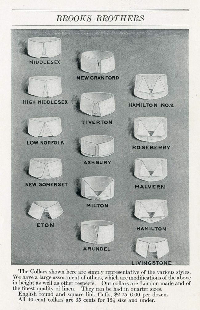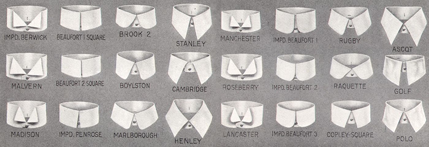 Enfin ce que j’appelle le col anglais est en fait un col « full cutaway », ou « full spread » comme disent les anglais. Intéressante image de 1921 ci-dessous, piquée dans cet excellent article. A ne pas confondre avec l’autre col anglais… le tab-collar qui se caractérise par sa petite patte d’attache. La chemise cristallise les noms étrangers. On parle bien de col cubain aussi…