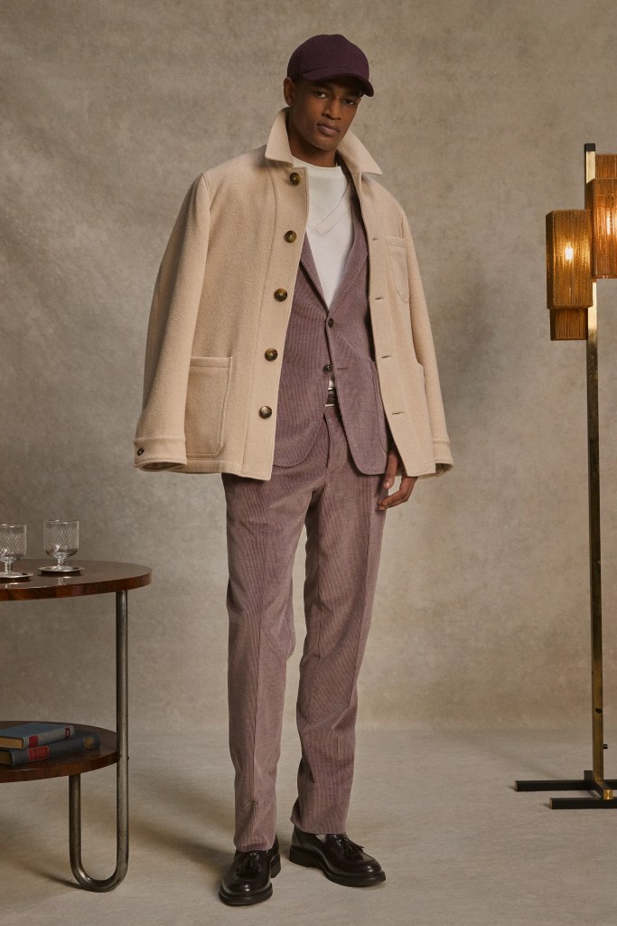 Dans de nombreuses maisons, surtout celles qui produisent à grande échelle tout en cherchant à maintenir un certain niveau, Canali sert de point de comparaison. Non pas pour copier un style, mais pour mesurer un niveau d’exécution. En tant que professionnel, ce que l’on regarde chez eux est très concret : la régularité des entoilages, la netteté des montages, la tenue des vestes après plusieurs saisons, la constance des séries entières. Autrement dit, non pas la réussite d’une pièce exceptionnelle, mais la capacité à produire du beau de manière répétée. Quel plaisir pour moi d’avoir croisé récemment dans un de mes ateliers la directrice technique, qui avait occupé cette position pendant 15 ans chez Canali. Une pointure. Ci-dessous quelques looks de l’automne-hiver, d’une simplicité superbe :
