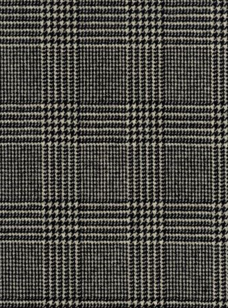 Ce serait précisément une de ces histoires qui serait à l’origine de tissu, pour habiller des gardes-chasse attachés au château d’Urquhart en Ecosse au bord du Loch Ness. On prononce « Eurqeut ». Mais au lieu de se contenter des dessins habituels en lignes colorés proposés plus haut, il eut l’idée de prendre un bête pied-de-poule noir et blanc, et d’en écraser les proportions alternativement. Ce faisant, cela crée des blocs de pieds-de-poule, reliés les uns aux autres par des harpes. Une sorte de carroyage irisé apparait. Quelle idée ! Ainsi naquit le « glen urquhart check » ou « glen urquhart plaid ». Vous reconnaitrez ci-dessous très clairement les croisures en pied-de-poules :