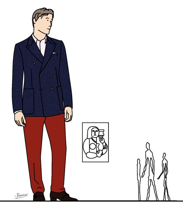 Du point de vue anglais, le pantalon dépareillé est par essence gris. Le pantalon gris est le complément indispensable des vestes en tweed et des pullovers. C’est la tenue idoine pour toutes les occasions informelles. Le pantalon gris peut aussi faire moins british s’il est associé avec un pull anthracite ou noir et des souliers noirs. Il devient alors plus urbain, bon chic bon genre. Avoir plusieurs tonalités de gris est envisageable et souhaitable, anthracite, gris moyen, gris clair. Avec, aucune erreur, vous serez toujours le ton.